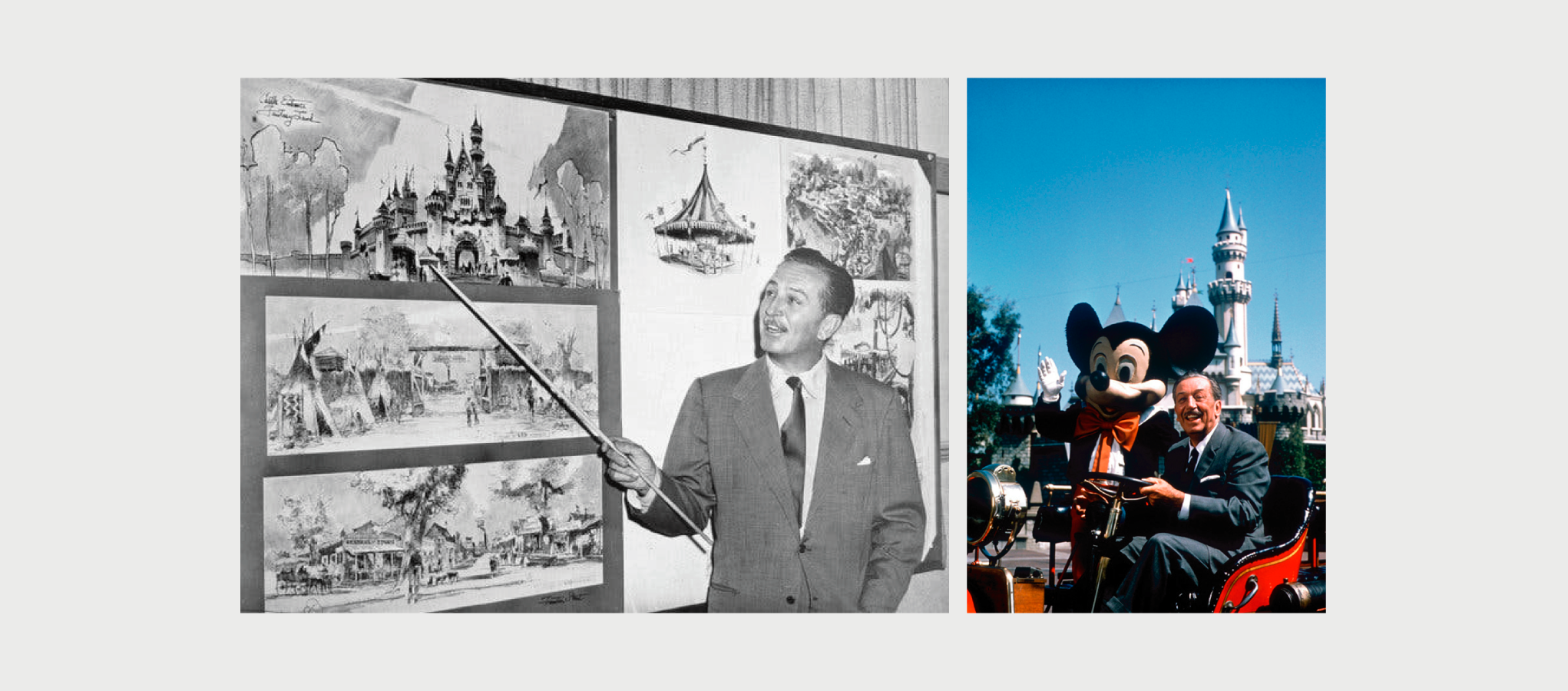 Τη δεκαετία του 1950, ο Disney εντάχθηκε στη βιομηχανία των λούνα παρκ και τον Ιούλιο του 1955 άνοιξε τη Disneyland στο Anaheim της Καλιφόρνια. Ο πανέξυπνος καινοτόμος οραματίστηκε το πάρκο να είναι μια καθηλωτική εμπειρία, όπου κάθε λεπτομέρεια θα λαμβάνεται υπόψη. Αποκάλεσε την ομάδα του στο πάρκο Imagineers και δημιούργησε μάλιστα τις κατευθυντήριες αρχές που έπρεπε να ακολουθήσουν, οι οποίες αργότερα έγιναν γνωστές ως Οι 10 εντολές του Μίκυ.Αυτές οι δέκα αρχές μοιάζουν πολύ με αυτές του σχεδιασμού UX, δηλαδή, γνωρίστε το κοινό σας, φορέστε τα παπούτσια του επισκέπτη σας, χρησιμοποιήστε καλές τεχνικές αφήγησης, αξιοποιήστε όλους τους μη λεκτικούς τρόπους επικοινωνίας - χρώμα, σχήμα, μορφή, υφή, αποφύγετε τη γνωστική υπερφόρτωση, πείτε μόνο μία ιστορία κάθε φορά, φέρτε σαφήνεια, δημιουργήστε διασκέδαση, δώστε προσοχή στην καθαριότητα και τη συνήθη συντήρηση.